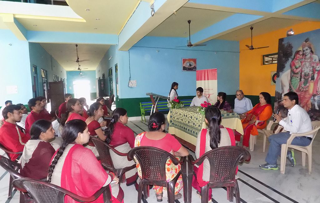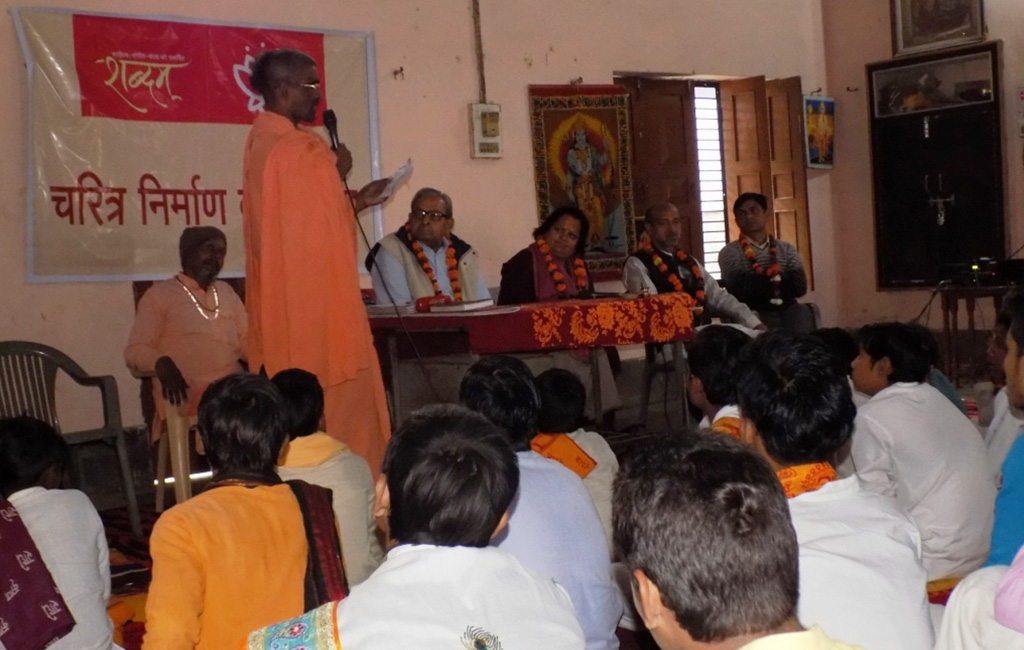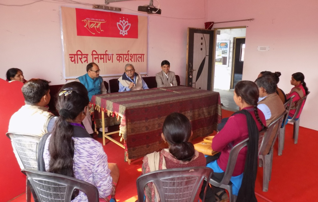 संस्कृत पाठशाला के अध्यापकों एवं विद्यार्थियों के मध्य चरित्र निर्माण कार्यशाला।