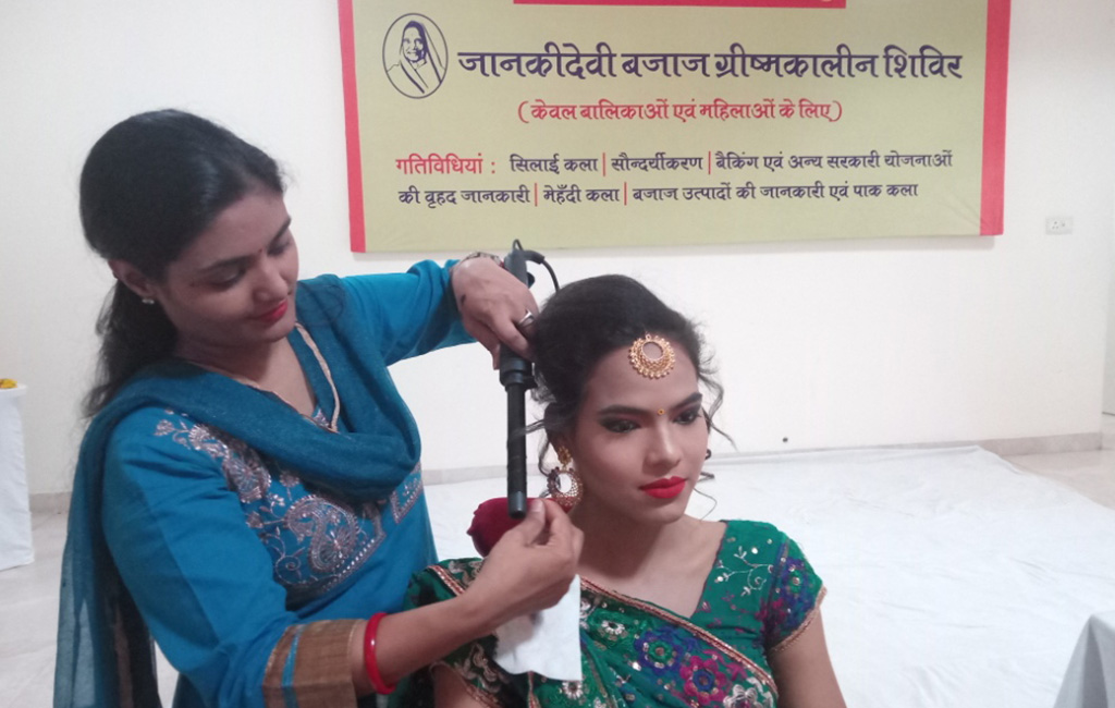पब्यूटीशियन का प्रशिक्षण देतीं शिक्षिका।