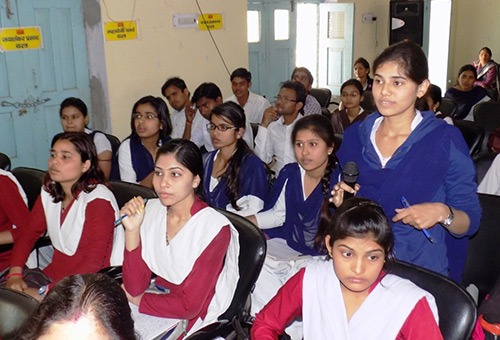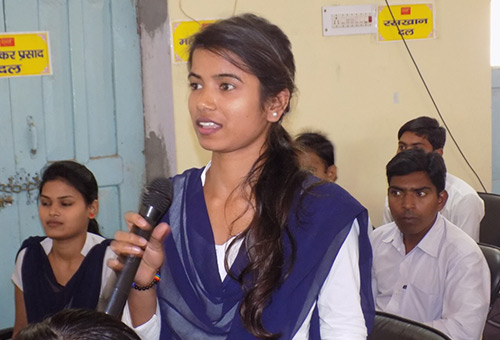 प्रश्न का प्रश्न का उत्तर देती हुयी छात्रा।