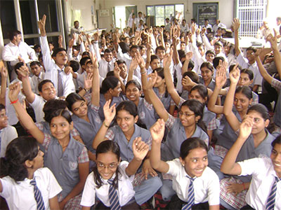 उत्तर देने को उत्साहित छात्राएं।