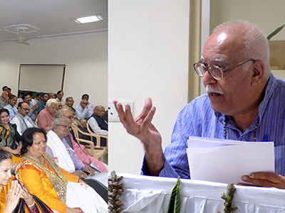 ‘समकालीन बाल कविता: नई चुनौतियाँ एवं संभावानाएं’ विषय पर बोलते प्रकाश मनु।