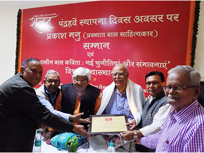 प्रकाश मनु ने समकालीन बाल कविता पर बोलते हुए कहा कि बाल कविता को बच्चे पढ़ते भी हैं और उससे खेलते भी हैं। बच्चों के लिए सबसे विस्मयकारी खिलौने का नाम बाल कविता है। चालाक लोगों को भगवान ने यही सजा दी है कि वे कभी भी भोली भाली हंसी नहीं हंस सकते। वे बच्चे नहीं बन सकते। कार्यक्रम के अध्यक्ष उदयप्रताप सिंह ने कहा कि बाल कविता, एकता और सहानभूति उत्पन्न करती हैं। संचालन डॉ. महेश आलोक ने किया एवं डॉ. रजनी यादव ने सभी अतिथियों के प्रति आभार व्यक्त किया।