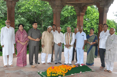 महावन गोकुल में रसखान की समाधि पर पुष्पार्चन करते हुए आयोजक संस्थाओं के मुख्य पदाधिकारी।