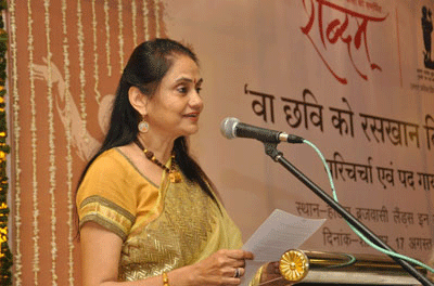 दूसरे सत्र में भक्तरंजित रससिक्त रसखान के कवित्त और सवैयों का गायन किया गया। सवैयों के गायन ने साज और आवाज की जुगलबंदी से सभागार में उपस्थित रसज्ञ श्रोताओं को विभोर किया।