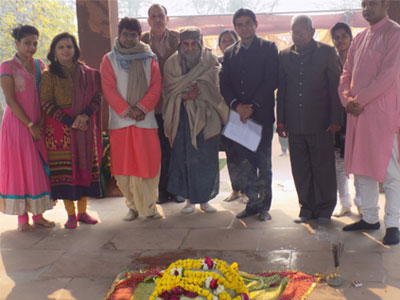 रसखान समाधि पर पुष्पार्चन करते कलाकर एवं अन्य।