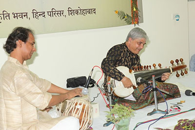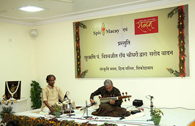 सरोद एवं तबला वादन करते पं. विश्वजीत रॉय चौधरी एवं दुर्जय भौमिक