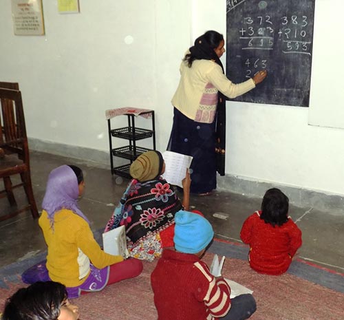 छात्रों को अंक ज्ञान देती हुयी ‘शब्दम्’प्रशिक्षिका।