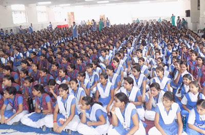 मंत्रमुग्ध होकर नृत्य को देखते छात्र-छात्राएँ।