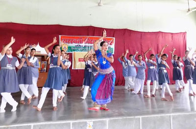 छात्राओं को नृत्य के गुर सिखातीं गीताजंली आचार्य।